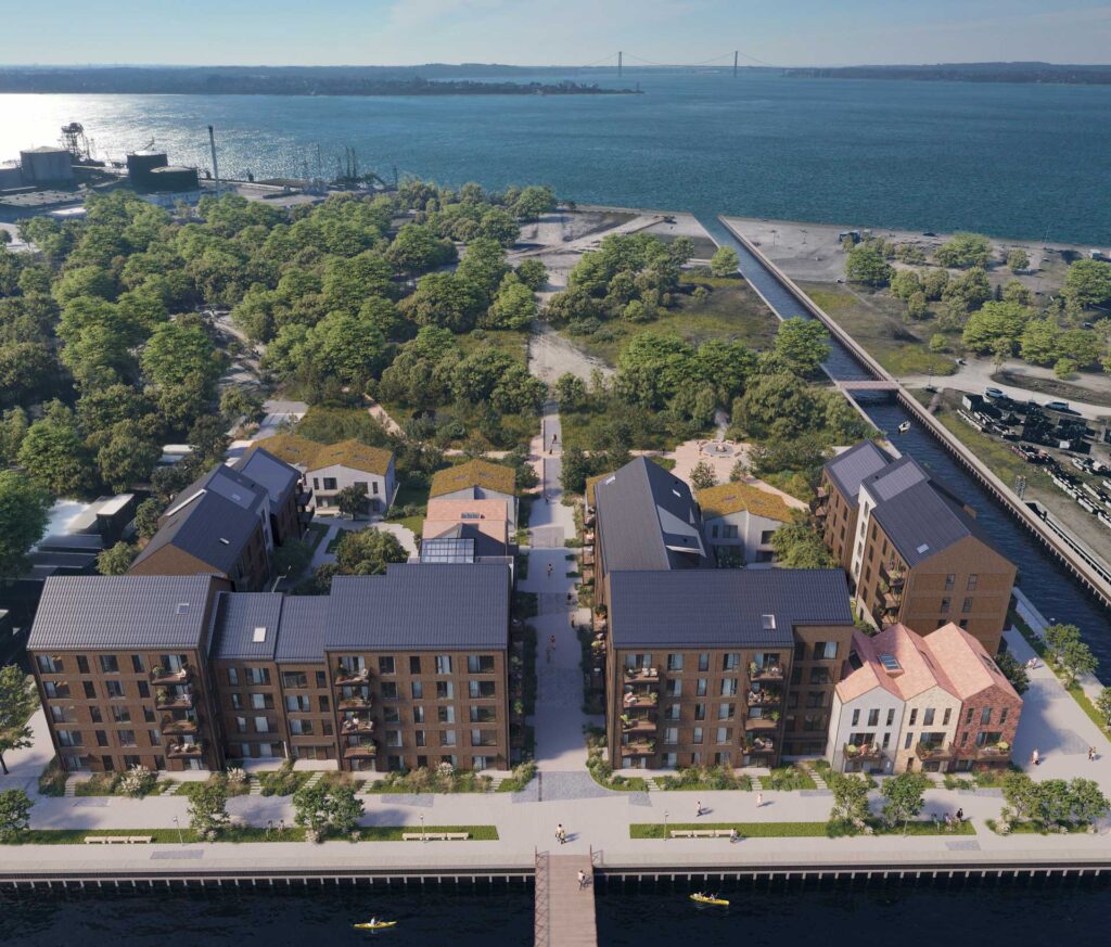 Lejligheder, rækkehuse og townhouses i den nye bydel Kanalbyen i Fredericia.